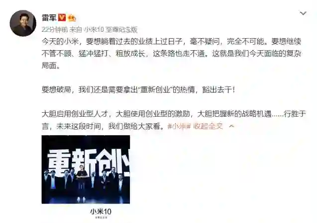 【雷军:无法躺赢或猛冲猛打,只能豁出去干】小米集团董事长雷军:今天的小米要想躺着过去的业绩上过日子,毫不疑问,完全不可能。要想继续不管不顾、猛冲猛打、粗放成长,这条路也走不通。这就是我们今天面临的复杂局面。要想破局,我们还是需要拿出“重新创业”的热情,豁出去干。