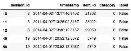 为了确定基本事实,即对于给定的会话是否有任何买入事件,我们只是检查yoochoose-clicks.dat中的session_id是否也出现在yoochoose-buys.dat中。