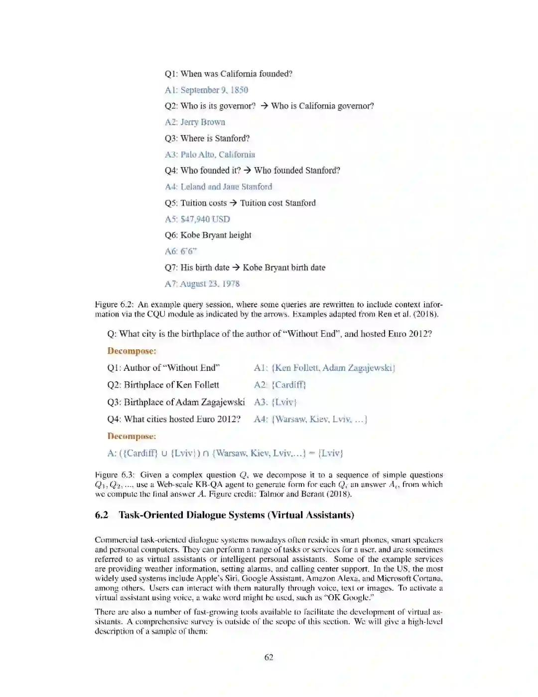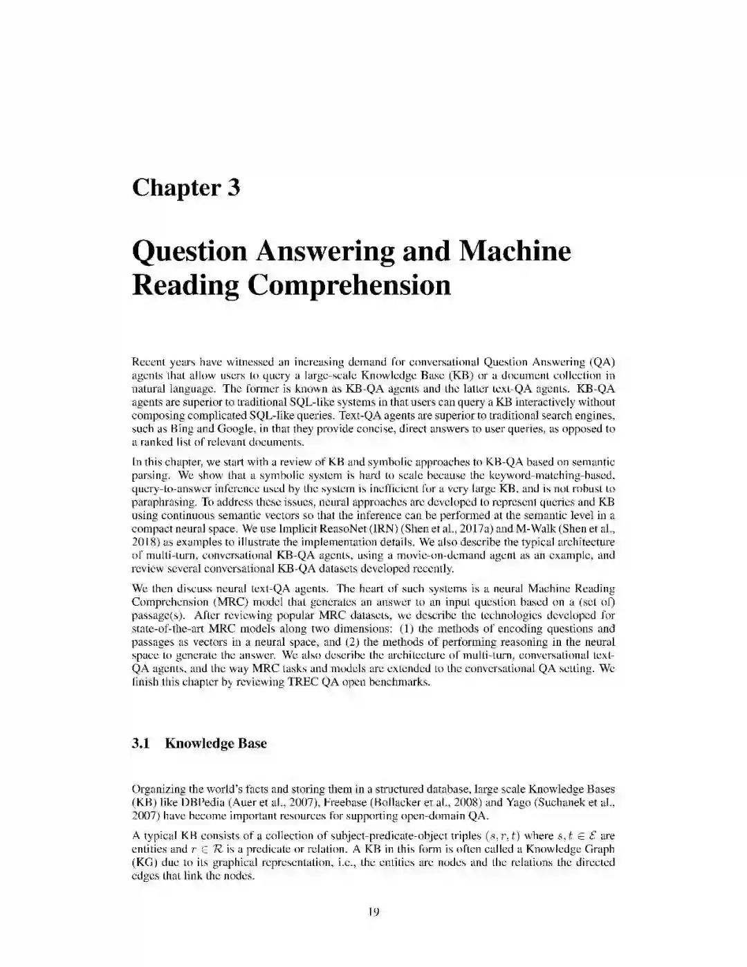 阅读理解问答。阅读理解 QA 能够从Web文档和预编译的知识图谱(KG 's)等各种数据源获取的丰富知识,为用户提出的问题,回复简明直接的答案。