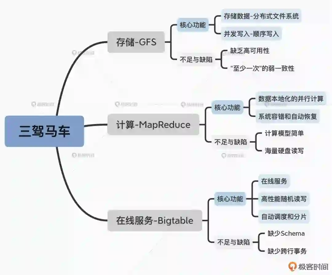 从最经典的 Google 三驾马车:GFS、MapReduce 和 Bigtable 这三篇「经典论文」开始讲起,帮你理解大数据系统面对的主要挑战,以及应对这些挑战的架构设计方法。