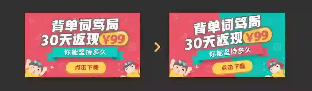 Ps:广告banner的点击量不仅仅在于视觉,跟产品、投放渠道等也有影响,在结果数据分析时应当注意。