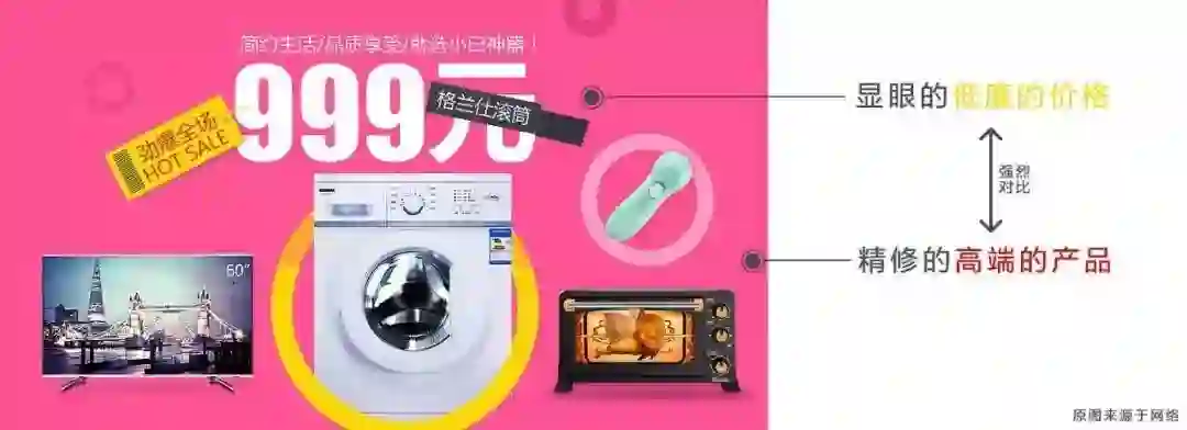 从追求低价高端产品入手,从而思考出在设计广告banner图时能不能突出制造对比来抓住用户需求,解决用户痛点。