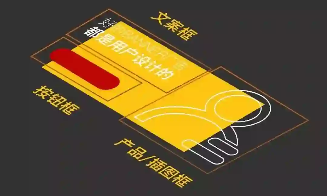 常规的广告banner图主要由文案框、产品图/插图框、背景框和按钮框四个框架构成,而易懂性常常体现在文案框的内容和设计上。