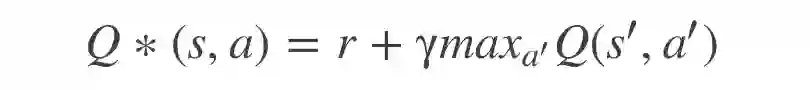 Q-learning是用来解决这类问题的一种方法,它能够求出“状态-行动”对(s,a)与价值的估计值v之间的直接关系。这个估计值应与在状态s下采取行动a所得到的期望折扣奖励相对应。结合贝尔曼方程(Bellman equation),我们可以通过迭代得出所有可能的“状态-行动”对的Q估计值 Q(s,a)。这种Q值迭代的方法来自于优化Q方程的以下性质: