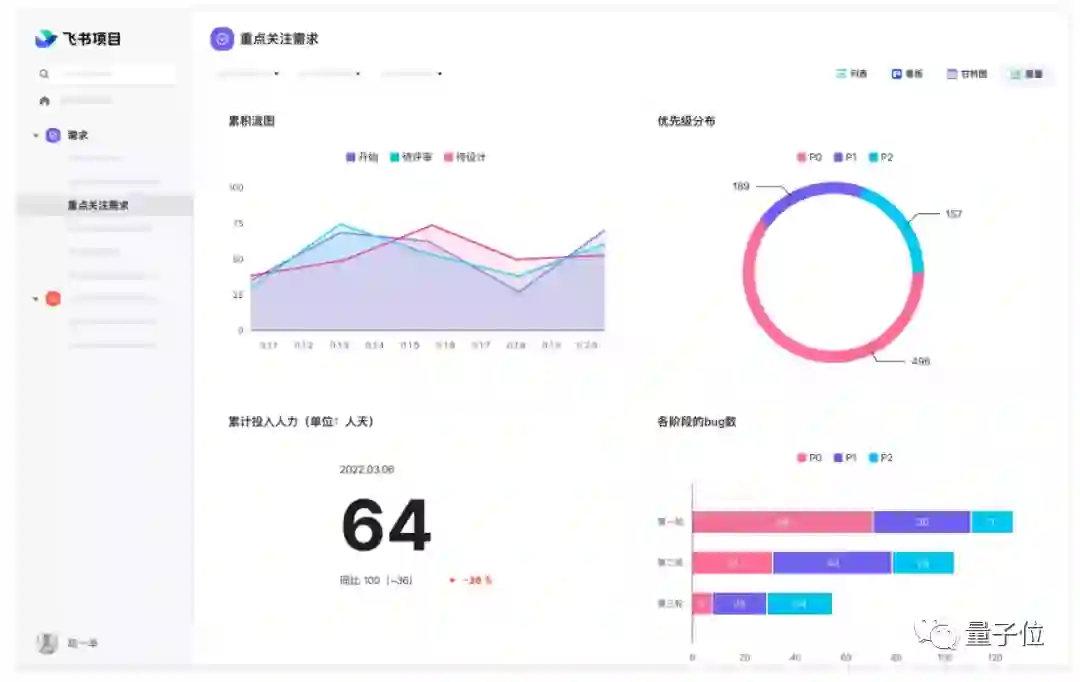 现在飞书项目自动帮忙统计,而且是实时性、多视图的,指标也可以自己设置。