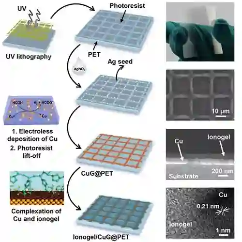 高性能离子凝胶复合铜网格柔性透明电极的设计