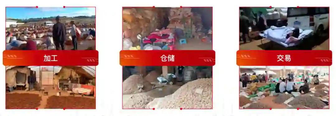 双方经过几轮打磨,将产业链抽象为上游种植,中游加工仓储,下游交易。更详细一些,可以分为种子、土地、种苗、大田种植、采挖、初加工、药材仓储、