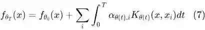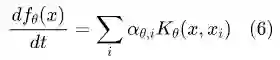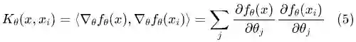,在神经网络中它还有一个非常酷的名字,叫做“Neural Tangent Kernel”,我们将其记为: