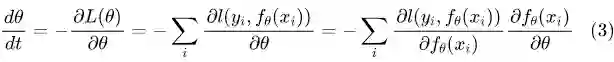 为了使得后面的推导更简洁,这里使用了求和的形式,一般情况下是求平均才对,但这不影响最终的结果。在“从动力学角度看优化算法”系列文章中,我们坚持的观点是梯度下降求解参数