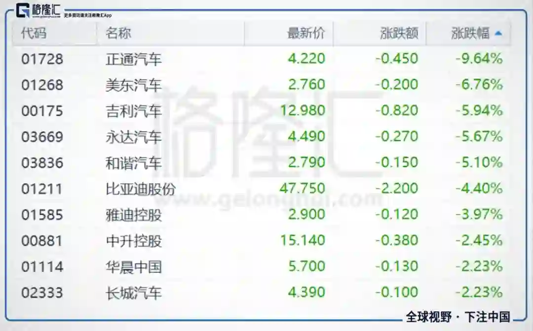 汽车购置税无减半汽车代理股及汽车股普跌