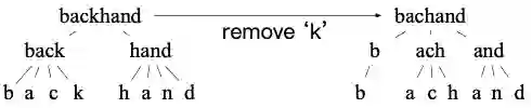 一个单词的内部结构可以表示成三层的树:根节点-全词;孩子节点-子词;叶子节点-字符。以BPE(Byte-Pair Encoding)[1]为代表的子词粒度表示方法只可以表示孩子节点的信息,而丧失了根和叶子节点的信息。如果字符序列出现了噪音或者拼写错误(如去掉了字符k),那么整个子词组合就会完全变化,输入到模型中的表示也就完全不一样了,因此鲁棒性较差。以CoNLL-2003 NER的开发集为例,我们基于BERT[2]的tokenizer切词后统计发现28%的名词会被切分成多个子词。如果随机删除所有名词中的任意一个字符,78%的词会切分成如图1这样完全不一样的组合。由此可以看出,不完整与不鲁棒问题是具有统计显著性的问题。