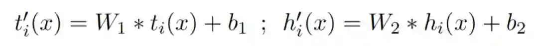 该模块主要包含两步:融合和分拆。在融合过程中,先对各自表示进行转换后,使用CNN抓取局部特征将两个来源的信息融合到一起: