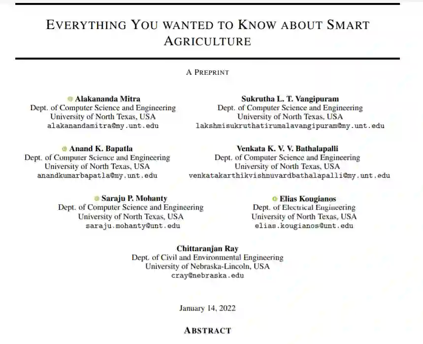 后台回复“SA45” 就可以获取《最新UNT《智慧农业》2022全面综述农业4.0发展的架构、技术、应用等》白皮书论文专知下载链接