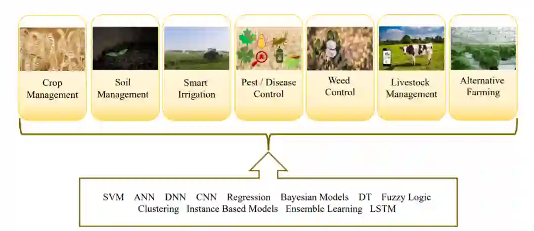 “精准农业还是农业”和“数字农业”,大多是“智能农业”[6]的前身。当农业的目标是在不同技术的帮助下为特定领域或作物优化、精确和定制解决方案时,它就属于“精准农业或农业”的标签。“数字农场”就是这两者的结合。本文将讨论解决“农业4.0”问题的“智能农业”及其未来。