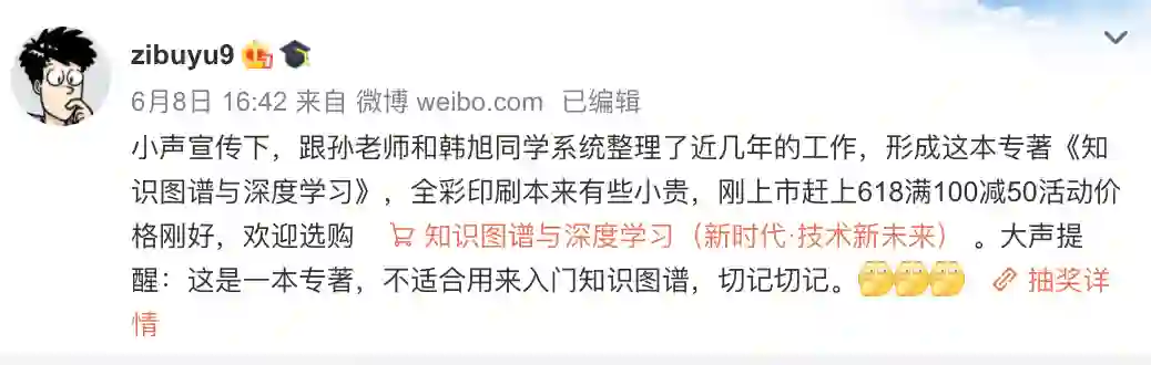 送五本清华NLP组新书《知识图谱与深度学习》,感谢清华大学出版社及刘知远老师赞助。本次活动为留言赠书,截止6月18日22点,我们将在认真留言的前提下取点赞前两名粉丝+三名留言用心的真粉包邮赠送《知识图谱与深度学习》!欢迎感兴趣的同学参与,以下介绍内容来自 TsinghuaNLP公众号。