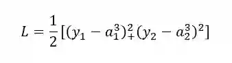 以平方误差来计算反向传播的过程,代价函数表示如下: