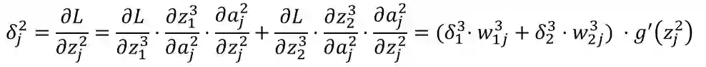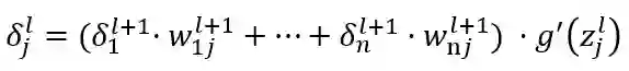 也就是说,我们根据输出层的神经误差单元δ就可以直接求出隐藏层的神经误差单元,进而省去了隐藏层的繁杂的求导过程,我们可以得出更一般的计算过程: