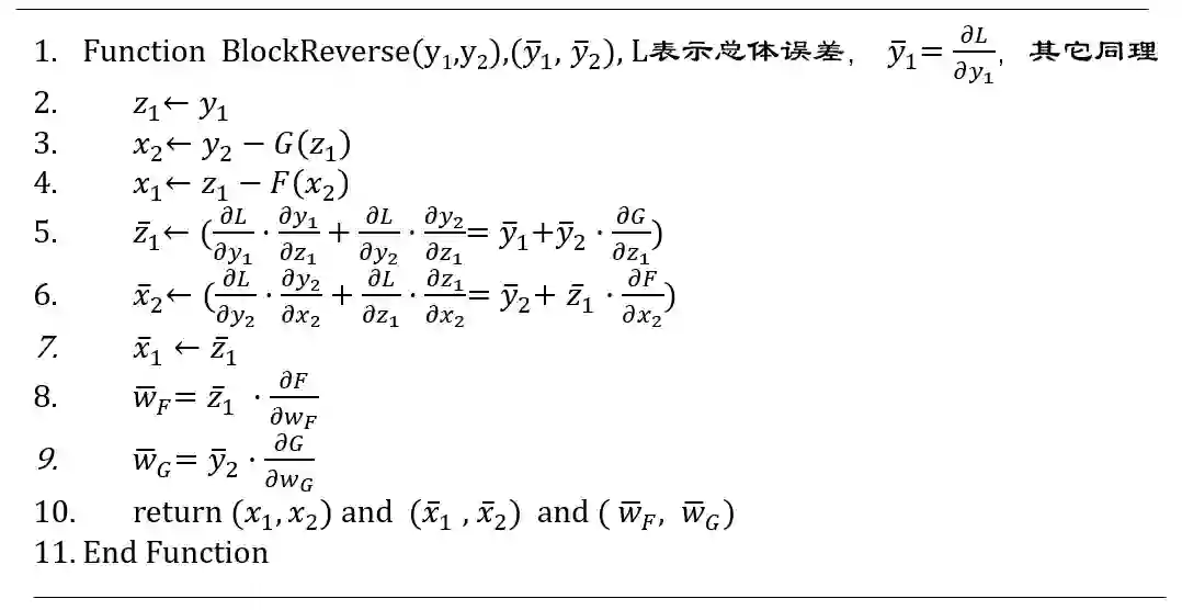 参考论文:The Reversible Residual Network:Backpropagation Without Storing Activations