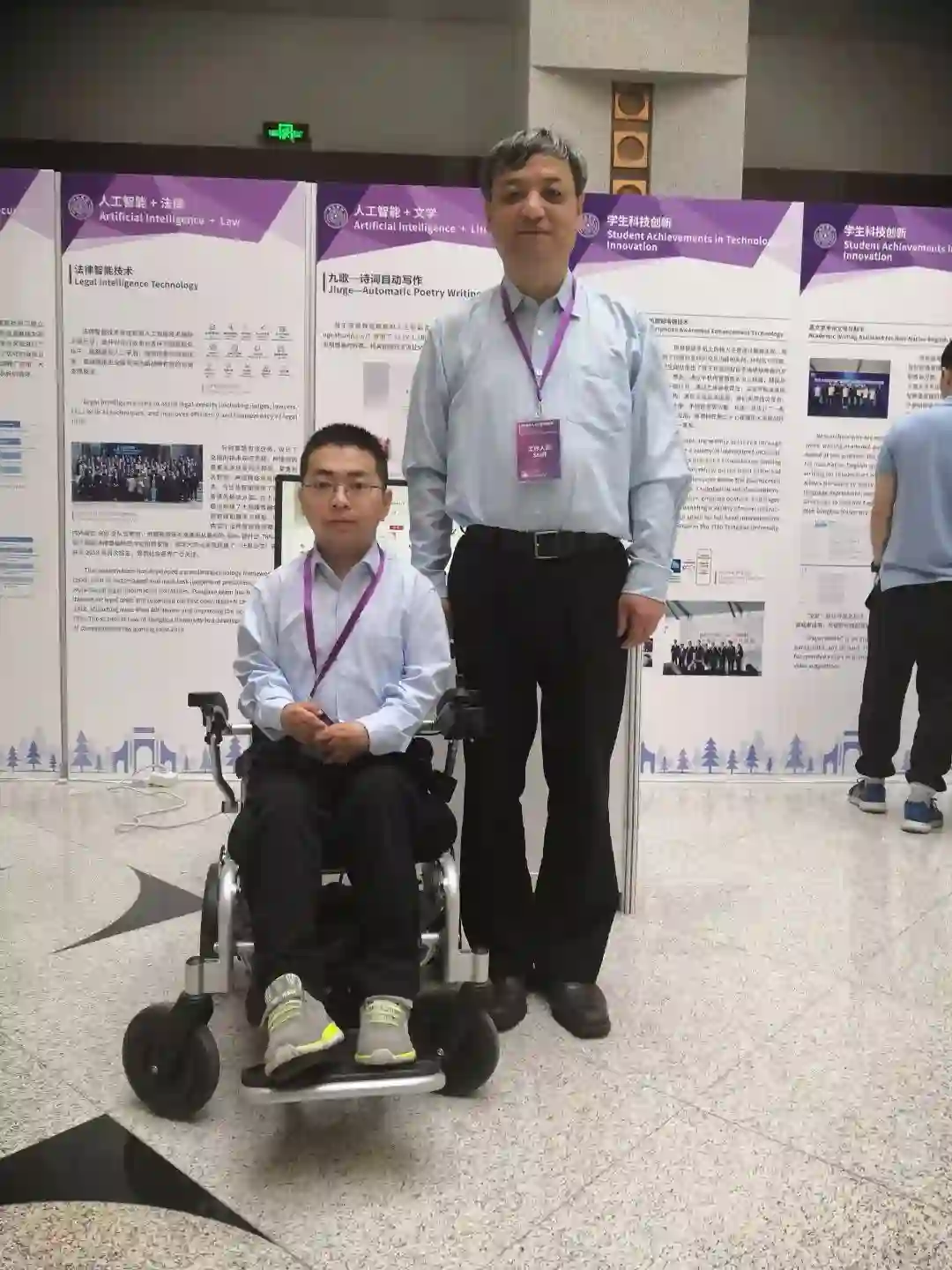 孙茂松教授与矣晓沅,在清华大学人工智能与教育展上