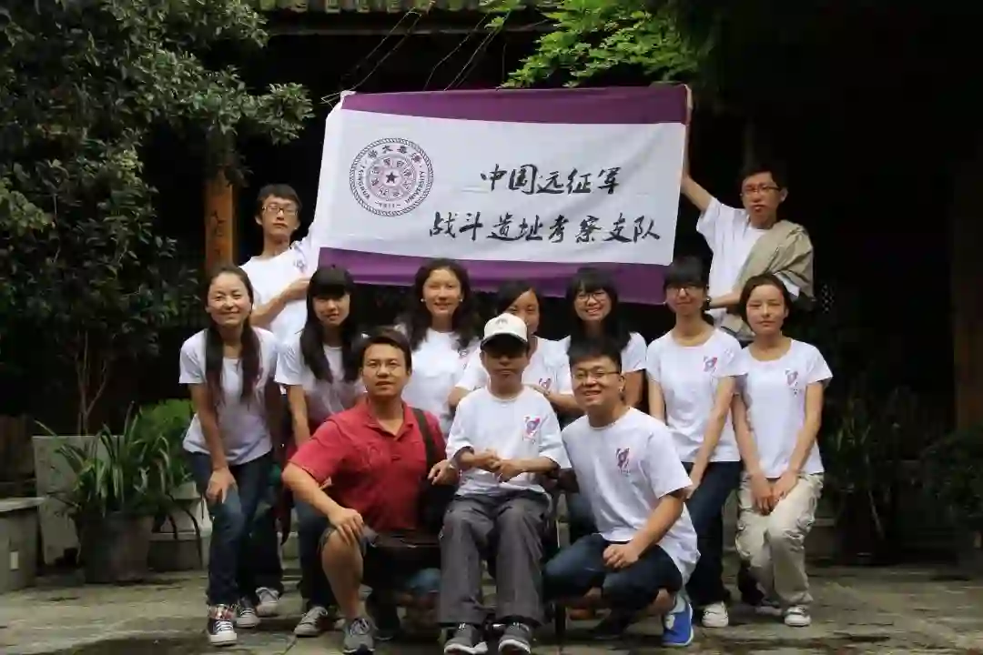 大二时,矣晓沅担任中国远征军考察支队队长去云南腾冲探寻中国远征军的战斗遗址。从偏远小镇的抗战博物馆,到怒江之畔的松山战场,在云南境内的六天里,他们行进了1500公里。轮椅走不了的砂石路,母亲扶着他一点点挪动;登松山时,面对崎岖的木质栈道,队友们和当地的农民朋友接力把他抱到了松山之上。从前期筹备到实践采访再到后期总结,作为一名队长,每一步他都认真走完。