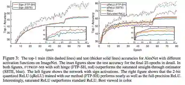 这种方法取得了显著的成功,使研究人员能够训练数百层的网络,并学习在各种任务上比以往任何方法的精确度都要高得多的模型。但是,随着网络越来越广泛,使用hard-threshold激活来进行量化的趋势更显著,这样网络可以实现二进制或低精度的推断和训练,可以极大地减少现代深层网络所需要的能耗和计算时间。除了量化,hard-threshold单元的输出规模与输入规模无关(或不敏感),这可以缓解梯度消失和梯度爆炸的问题,并有助于避免在反向传播低精度训练中出现的一些病态问题。避免这些问题对于开发大型网络系统至关重要,这些系统可以用来执行更复杂的任务。