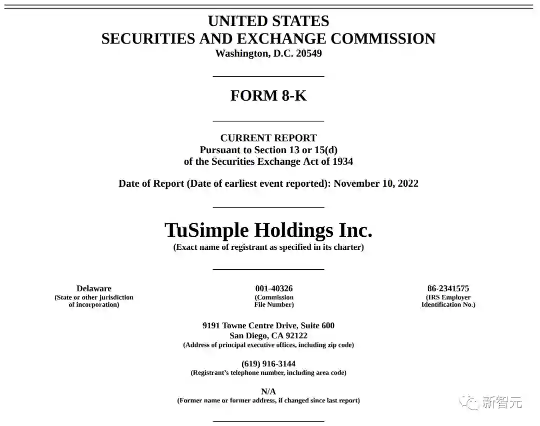这个说法在11月7日图森未来提交的Form 8-K中国得到了证实。