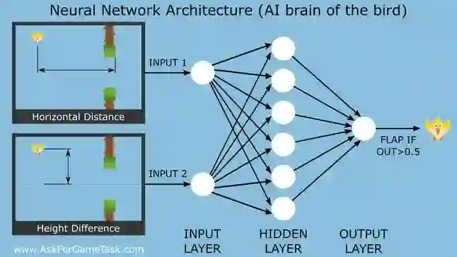 下面是一款基于神经网络以及遗传算法,教会小鸟族群拍打翅膀,从而生存下来的小游戏。
