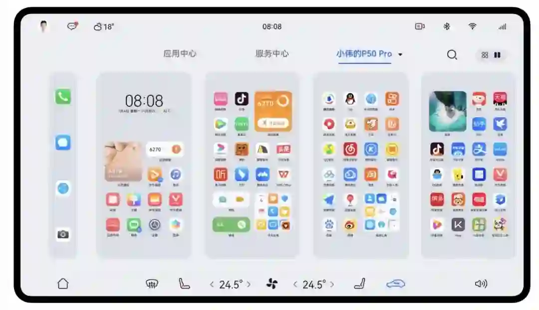 但是不用担心车机应用的适配,问界 M7 的发布会上,鸿蒙 3.0 的新特性超级桌面是华为对目前车机应用适配提供的一套独特的解决思路。简而言之,超级桌面就是利用华为多终端互联互通的特性将华为手机的应用直接同步到车机并且以平板的显示方式展示,当然前提是你也必须是华为手机的用户。