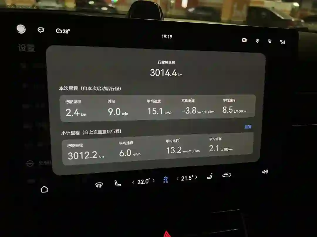 行驶里程 3000km+,平均时速 6km/h(笑,百公里 13.2 度电 2.1L 油。