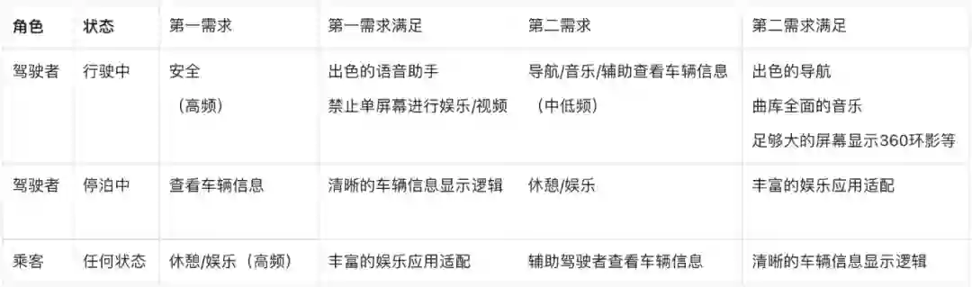 客观来说,这套车机对我做购买决策有很大的影响。但是经过一个多月的使用和思考,我觉得按照驾驶者和乘坐者两类用户,行驶中和停泊中两类场景来讨论车机对车和用户的价值: