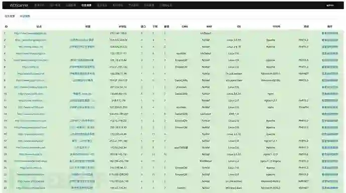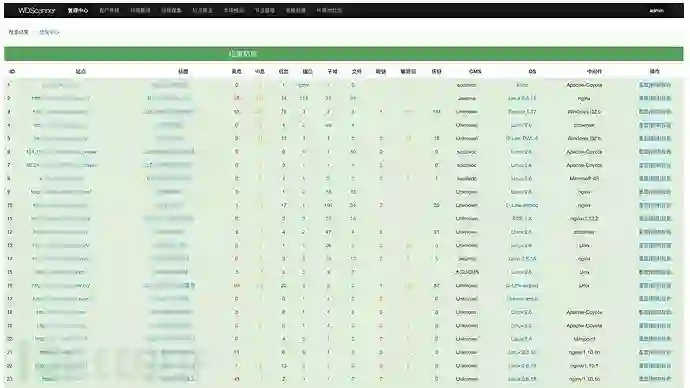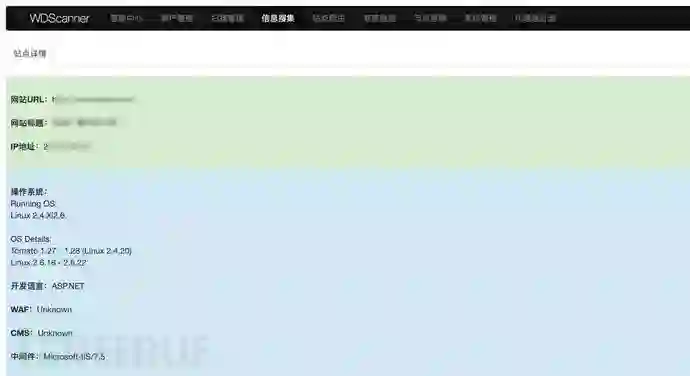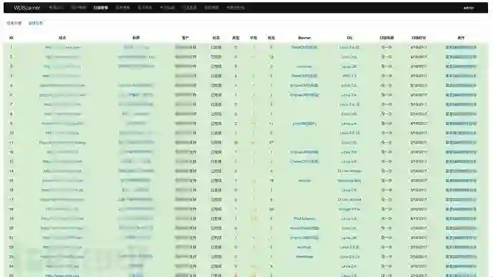 在添加新任务后,后台可主动识别目标 banner 和操作系统信息、端口开放、敏感文件扫描等。