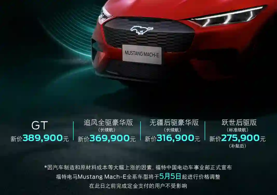 【福特电马Mustang Mach-E全系车型5月5日起调价】