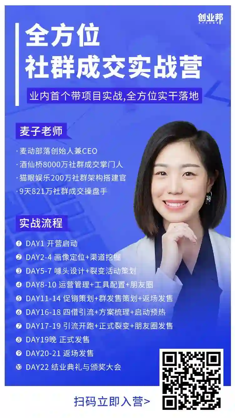 无论你是想要靠社群创业的小白,还是已经小有成就的社群经营者,我们都会从实际入手,为你答疑解惑,制定属于你的社群成交方法。