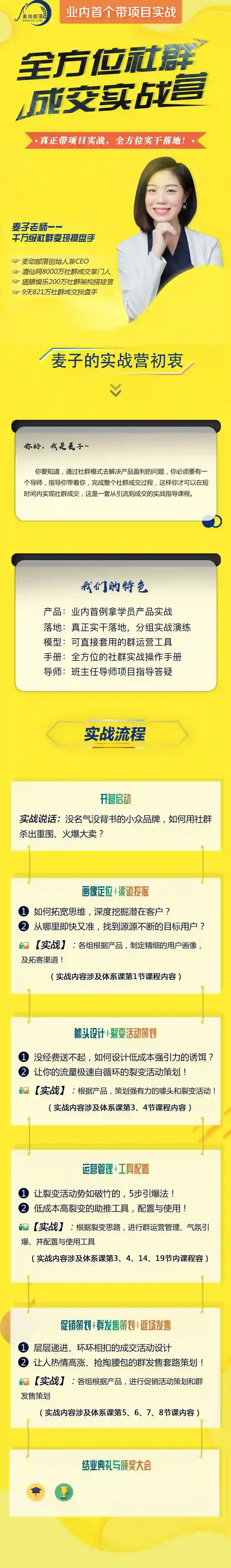 这样你才可以在短时间内实现社群成交,这是一套从引流到成交的实战指导课程,也是业内首个带项目社群实战训练营,全方位为你解答关于社群的知识。