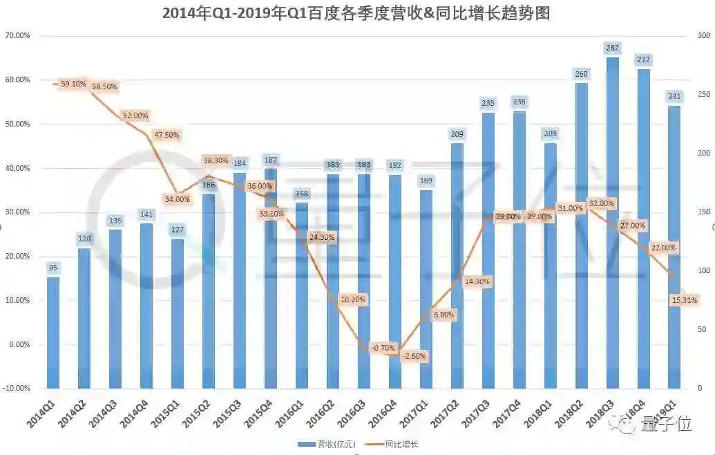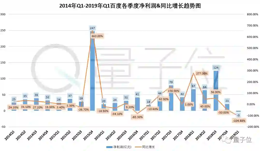 刚刚公布的2019年第一季度财报中,百度总营收241亿元(约合35.9亿美元),同比增长15%,净利润-3.27亿元(约合-4900万美元),出现罕见亏损情况。