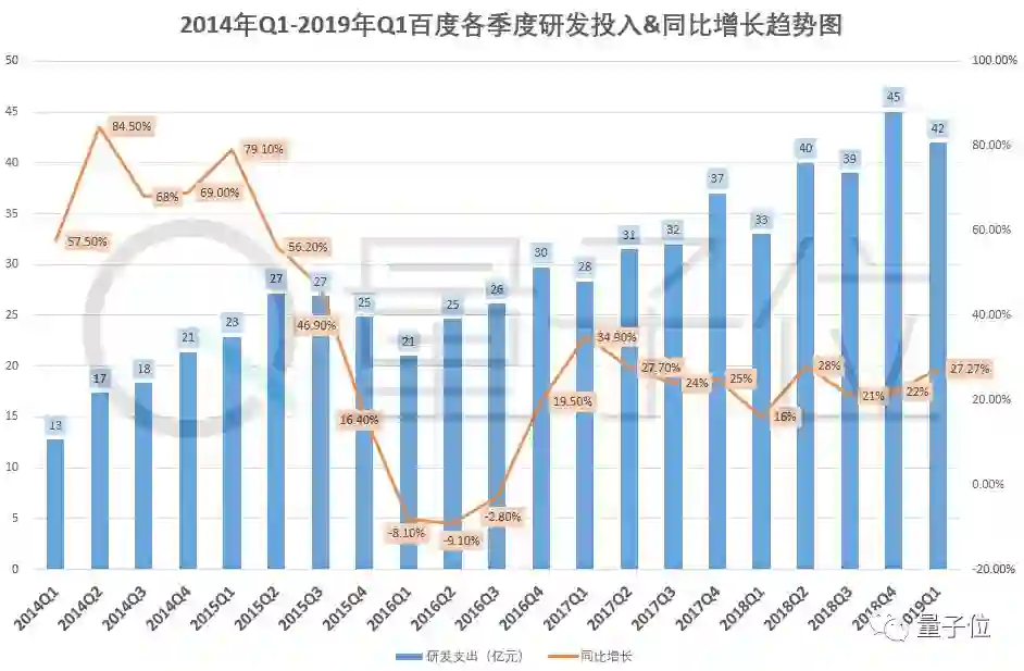 一项是研发支出,42亿元(约合6.21亿美元),同比增长26%,在岁末年初的互联网公司裁员气氛中,百度用真金白银展示出对研发和技术人才重视,研发人员的成本投入增长,大大超过了公司营收和利润增长幅度。