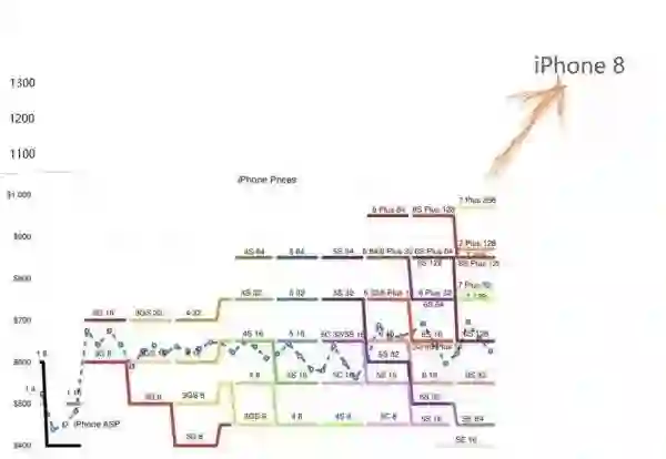 苹果资讯博客作者 John Gruber 给 iPhone 8 一开始的估价是 1500 美元,后来《华尔街日报》标到 1400,然后 Gruber 给出新估价是 1300 到 1400 美元左右。我们就暂且相信消息灵通的这二位:iPhone 8 的价格是 1400 美元左右。