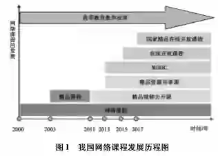为深入推进2000年教育部启动实施的“新世纪高等教育教学改革工程”[1],充分发挥信息技术对教育教学变革的推动作用,教育部随即启动实施了“新世纪网络课程建设工程”[2],这是我国网络课程规模化建设与发展的起始性标志。随后,2003年教育部又发布了《教育部关于启动高等学校教学质量与教学改革工程精品课程建设工作的通知》(教高[2003]1号),在原网络课程建设的基础上开启了国家精品课程建设工程;2011年教育部又发布了《教育部关于国家精品开放课程建设的实施意见》(教高[2011]8号),开启了国家精品开放课程的建设,包括精品视频公开课与精品资源共享课,其中精品资源共享课是以原国家精品课程为基础,对其进行结构优化、转型升级;2015年教育部发布了《教育部关于加强高等学校在线开放课程建设应用与管理的意见》(教高[2015]3号),2017年教育部发布了《教育部办公厅关于开展2017年国家精品在线开放课程认定工作的通知》(教高厅函〔2017〕40号),这两个文件将以MOOC为代表的在线开放课程的发展推向了新的高度。本文通过对上述相关政策文件的梳理与分析,绘制了我国网络课程发展历程图,如图1所示。