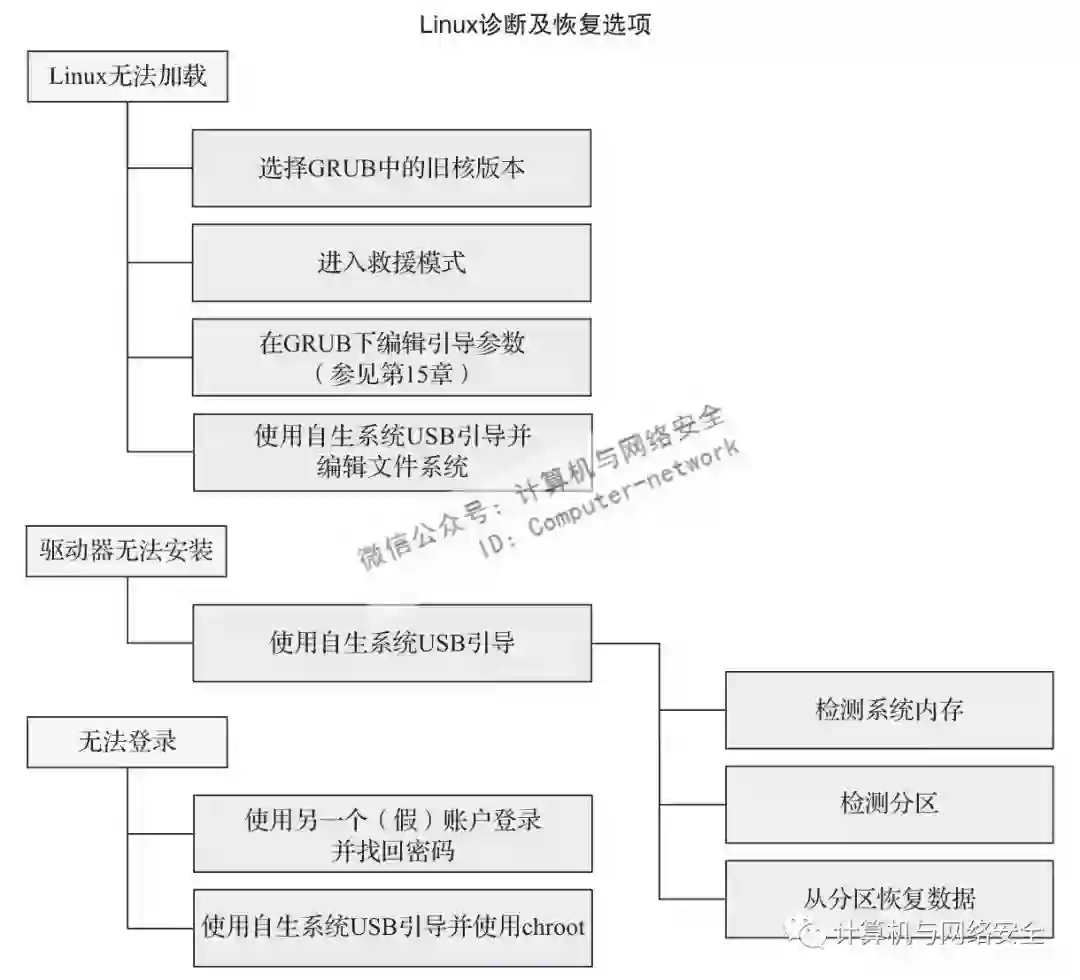 ● 所有的部件都正常工作,但是因为软件问题或忘记密码无法登录Linux系统。