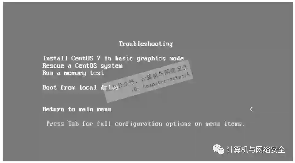 图12 从CentOS安装光盘主菜单链接到Troubleshooting菜单