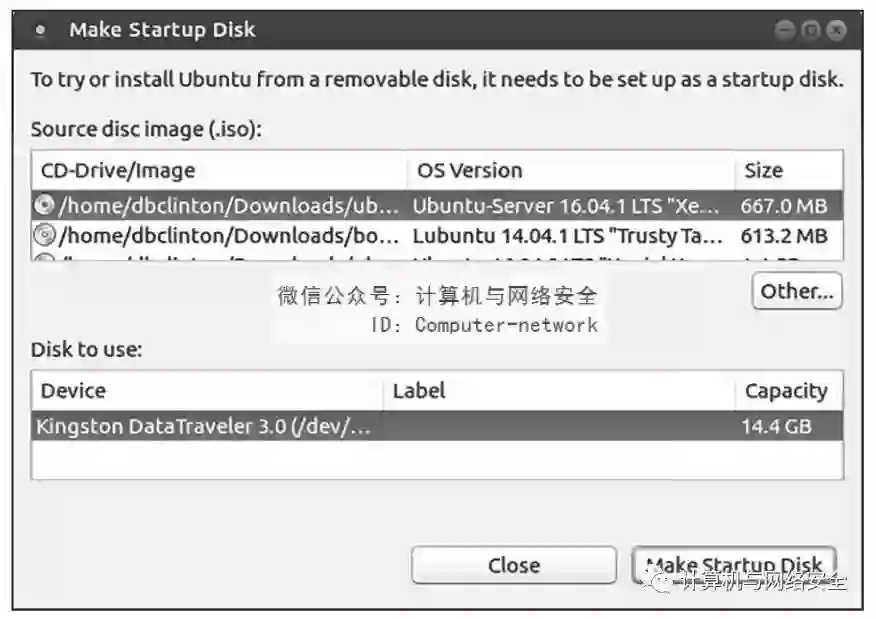 随着一种或另一种可靠的映像安全下载,是时候创建恢复工具原生系统引导设备了。如果当前计算机和正在创建的原生系统引导USB都将运行Debian、Ubuntu或派生程序,最简单的方法是使用Ubuntu Startup Disk Creator。