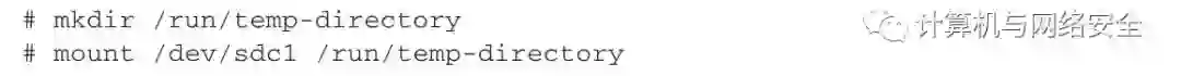 分区可能无法作为文件系统被访问,因为它还没有被挂载。事实上,如果df命令的结果中没有显示它,那么必须挂载它,这意味着将其分配到文件系统中一个可被访问的位置。可以创建一个挂载分区的新目录,然后使用mount命令快速解决这个问题。选择在/run/目录中创建临时挂载点,碰巧找到的任何未使用的位置(如/media/或/mnt/)也可以。我们假定分区名称为/dev/sdcl: