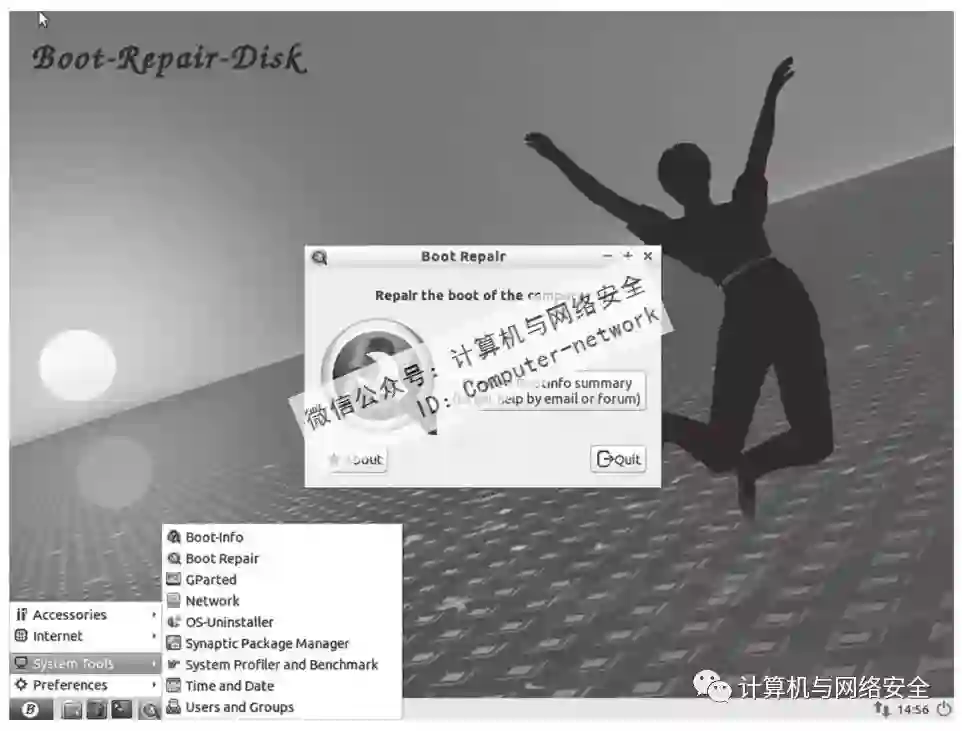 图6 Boot-Repair桌面以及可见的System Tools菜单