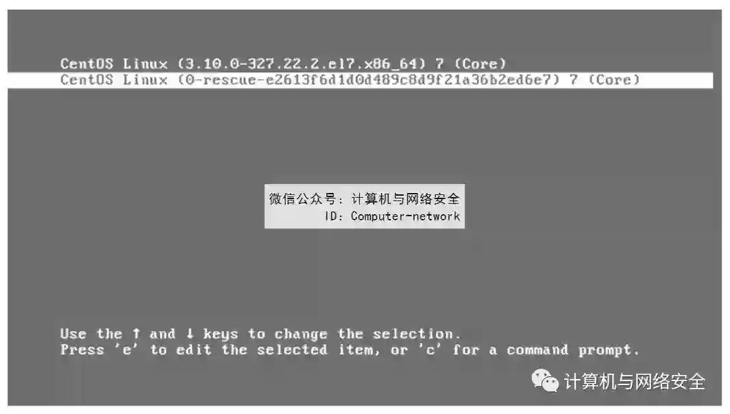 图5 CentOS Linux提供救援内核,用于直接引导到单一用户shell会话,以对损坏的系统进行故障排除