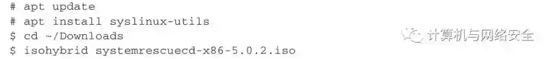 另一方面,如果需要在不同发行版本下构建的原生系统引导设备(试图挽救CentOS机器并希望使用CentOS工具来完成),那么将需要重新使用dd了。如果想让一个基于CD或DVD的原生系统可启动,运行在任何Linux主机上的dd都能胜任这个工作。但如果映像被写入一个USB驱动器,而碰巧在Ubuntu主机上工作,首先需要添加一个MBR到.ISO文档以修改映像,BIOS和UEFI固件将知道如何运行。图9展示了该过程。