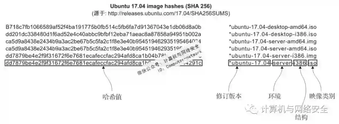 图7 用于Ubuntu17.04的各种映像的SHA256哈希值,目前可供下载