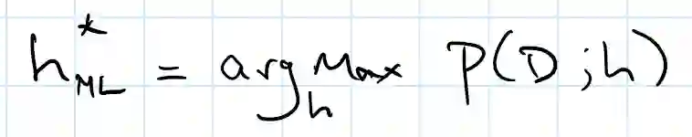 一种方法是找到能最大化观测数据的似然函数(即 P(D;h))的参数 h 的值。在这里,我们用「;」来表示 h 是一个关于概率分布 P 的参数,意味着参数 h 定义了分布 P,但是分布 P 只是说明了观测数据 D 成立的可能性有多大。