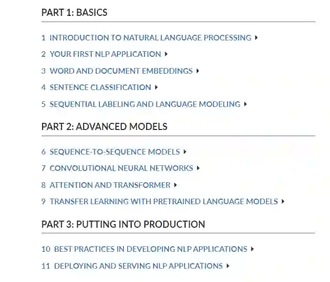 第2部分介绍高级NLP主题,包括序列到序列模型、Transformer以及如何利用迁移学习和预先训练过的语言模型来构建强大的NLP应用。
