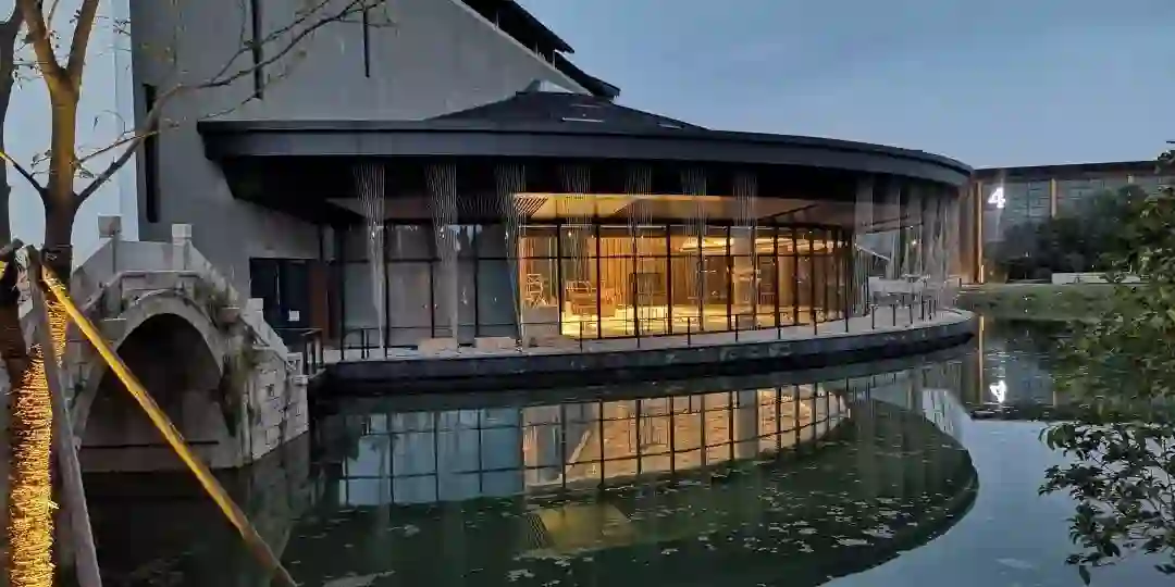 据悉,宴会中心建筑风格是传统与现代的有机结合,充分考虑了互联网元素、中国传统文化及江南水乡特色,呈现了斗拱、马头墙、塔楼、青瓦等江南水乡元素与互联网相融共生的和美场景。