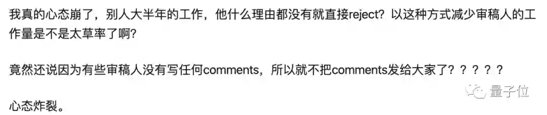 我真的心态崩了,别人大半年的工作,他什么理由都没有就直接reject?以这种方式减少审稿人的工作量是不是太草率了啊?